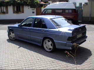 Deniz´ 190er techn. Daten (Halterangaben): Baujahr 9/84 Motor 2,0 Kilometerlaufleistung 162000 km. In meiner Hand seit 7/2000 Auto wurde im August 2002 umlackiert von weiß auf Quarzblaumettalic( Farbe vom CLK) Ausstattung. - Elektrische Fensterheber nachgerüstet - Elektrische Spiegeleinstellung nachgerüstet. - ZV mit Infarotfernbedienung nachgerüstet. - 36er Irmscher Raid Sportlenkrad - Aluschaltknauf mit Starteroption (noch nicht ganz fertig angeschlossen) - Türpappen und Sitze vom Baujahr 92 nachgerüstet - Alufussmatten - Mittelarmlehnebox - Schiebedach - Panasonic Anlage mit 8-fach CD-Wechsler - Borbet A 7 1/2 *17 mit 225/35 ZR17 - Komplett Umbau auf 2,3 16 V nur optik - Supersprint Sportauspuff mit Doppelrohr 2 * 76 mm - neu getönte Windschutzscheibe Geplant ist noch: M3 Spiegel mit Blinkeransteuerung, Avantgarde Kühlergrill, Lederausstattung, eventuell Klima, böser Blick ..... etc. |