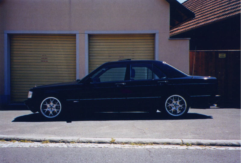 techn. Daten (Halterangaben) 190E 2.3 für nen 88er steht er noch top da. Die Austattung enthält u.a. E-Fenster,elek. Schiebe-Hebedach,elek.u beheizbare Außenspiegel u. Waschdüsen,Automaticgetriebe, ZV-mit Funk u.Alarm,Mittelarmlehne vorne,Servo,ABS,Nebelleuchten blau,US-Seitenbeleuchtung vorne u. hinten, Sowie 40mm Brabusfedern mit 1er Gummis,K+N Luftfilter nen Supersprint Sportauspuff. Nicht zu vergessen die vercromten Zierleisten runherum sowie meine Borbet BS-Felgen der größe 9mal16 Zoll un 215/40er Bereifung.