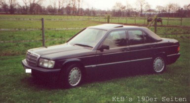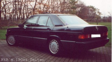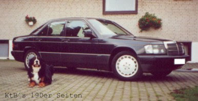 DB 190E 2,0 122 PS Sportline 5-Gang Blauschwarz-metallic / Innenausstattung Leder schwarz EZ 01.03.1991 KM-Stand zur Zeit 102.300 Sonderausstattungen ab Werk: Sportline-Paket (Sportsitze vorn, Tieferlegung um 20mm, Lederlenkrad und Schalthebel sowie LM-Räder 15-Loch ("Gullydeckel") in 7x15 mit 205/55 R 15 V ABS Lederausstattung Sitzheizung Elektrische Fensterheber 4-fach Elektrisches Schiebedach Zentralverriegelung Colorverglasung Kopfstützen im Fond Mittelkonsole in Holzausführung Automatische Antenne und -ganz wichtig- Fondraumbeleuchtung Nachgerüstete Sonderausstattungen: Mittelarmlehne vorne Original MB, Dank an den Vorbesitzer :-) Weiße Blinker vorne (Hella) Fernbedienung für ZV (Waeco) Musikanlage: Blaupunkt Kansas DJ mit Casseiver und 10er-CD-Wechsler im Kofferraum Vorne MB-Quart Drei-Wege-System mit Tief-Mittel-Töner in der Tür und Hochtöner im Armaturenbrett Hinten MacAudio 16" 2-Wege