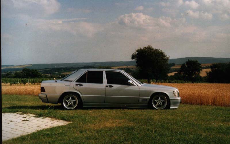 Stefan´s 190er techn. Daten (Halterangaben): 2,6 Baujahr 1990/10, Sportline Stoßstange vorne W202 Riegerseitenschweller Primlineheckstoßstange Heckscheibenspoiler EVO I Silberne Heckleuchten Sportauspuff 6 cm tiefergelegt H&R Federn Holzsportlenkrad 16 V Mittelkonsole Alufelgen, Marke S2 Vorne 8,5 J16 hinten 9 J16 Bereifung 225/R45 16 Dunkle Scheiben Weiße Blinker Scheibenwerferblenden Farbe von W220 S-Klasse Kofferraumausbau Motor bearbeitet Leistung laut Leistungsprüfstand 185 PS, Einlass- und Auslasskanäle aufgebohrt und poliert Motor komplett neu abgedichtet Verchromte M3-Spiegel Innenraum blaue Neonröhren 2 elektrische Fensterheber Radkästen vorne und hinten bearbeitet Fahrzeug ist aus Östereich Zu verkaufen: -Rundumverbau hab ich noch zwei Stück, ca. 500 Euro pro Rundumverbau (Stoßstange vorne, Stoßstange hinten und Rundumverkleidungen). -EVO I Stoßstange vorne - VB 300 Euro. -Riegerstoßstange vorne - VB 200 Euro. -Alufelgen 7,5 J 15 AEC Speichenfelgen, 205/R5015 Sommerreifen - VB 600 Euro. -2 Stoßstangen vorne für W124, 2 Stoßstangen hinten für W124 MARKE PRIMLINE - VB 350 Euro. -2 Kühlergrill ohne Mercedesstern für W124 - VB 100 Euro für beide. -10 Stück Kühlergrill für W123 ohne Mercedesstern - VB pro Stück 10 Euro. mail: pepsi_benz@gmx.at |