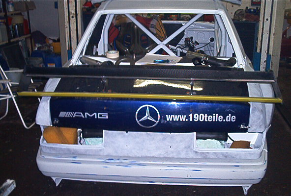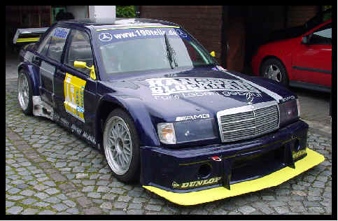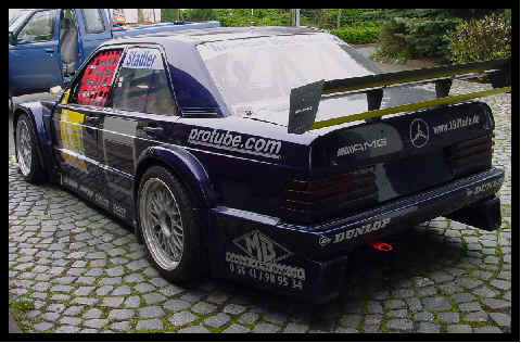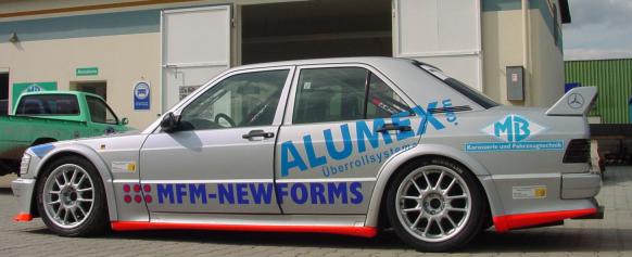 Das ist das Rennfahrzeug der Saison 2003. Die Karosse stammt aus einem 2.3-16 und wurde mit 190 Klasse I Umbauteilen versehen. Der Motor und die gesamte Technik kommen auch aus einem 190 2.5-16 Klasse I. |