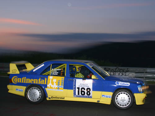 Dies ist ein modifizierter Mercedes Benz 190E 2.5-16. Das Fahrzeug wurde bei zwei Langstreckenrennen und dem 24h-Rennen auf dem Nürburgring eingesetzt. |
