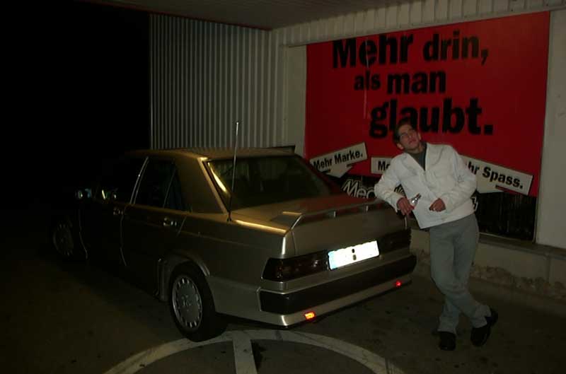 techn. Daten (Halteangaben): grill angeschweist, handgefertigter böser blick aus blech, weisse blinker, schwarze Rückleuchten, cleaner Heckdeckel, Soundboard, silberne Armaturen, Lufthutze von Renault 19 in Haube, Keilfahrwerk 70/0...grinss, Eigenbau Auspuff, Spiegel, Türgriffe und Motorteile in Wagenfarbe etc. |