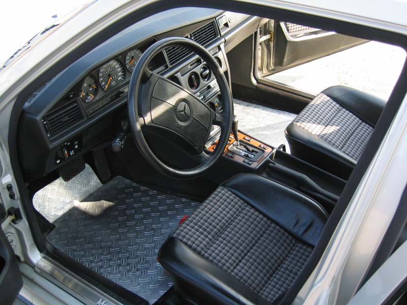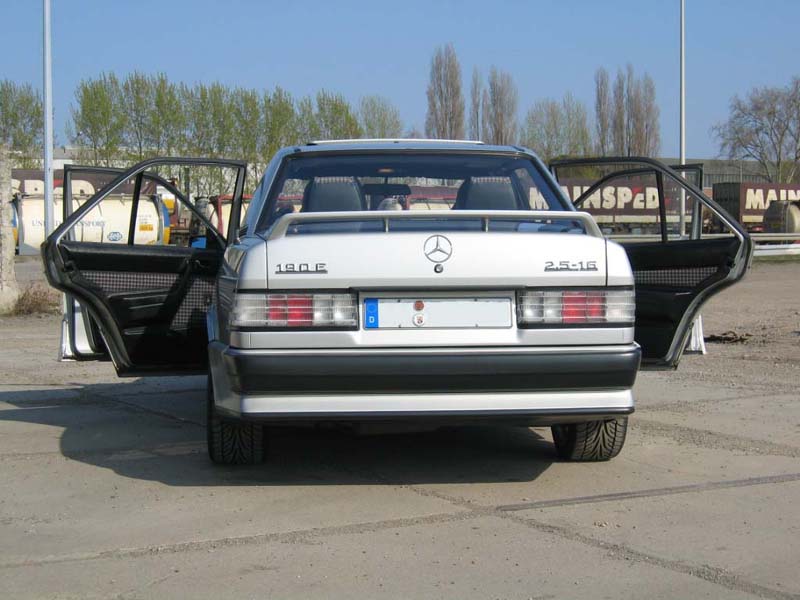 -Weiße Blinker vorn -Weiße Rückleuchten mit Blinkerlampen Pillips Sivervision -H4 Lampen von Pillips 30% mehr Licht -Eistiegsleisten Mercedes Benz Alu gebürstet -Alu-Riffelblech Fußmatten -Avantgardgrilleinsatz -Mercedes Benz 190E Evo II Felgen 8.25x17" -Reifen 4xDunlop SP9000 245/35/17