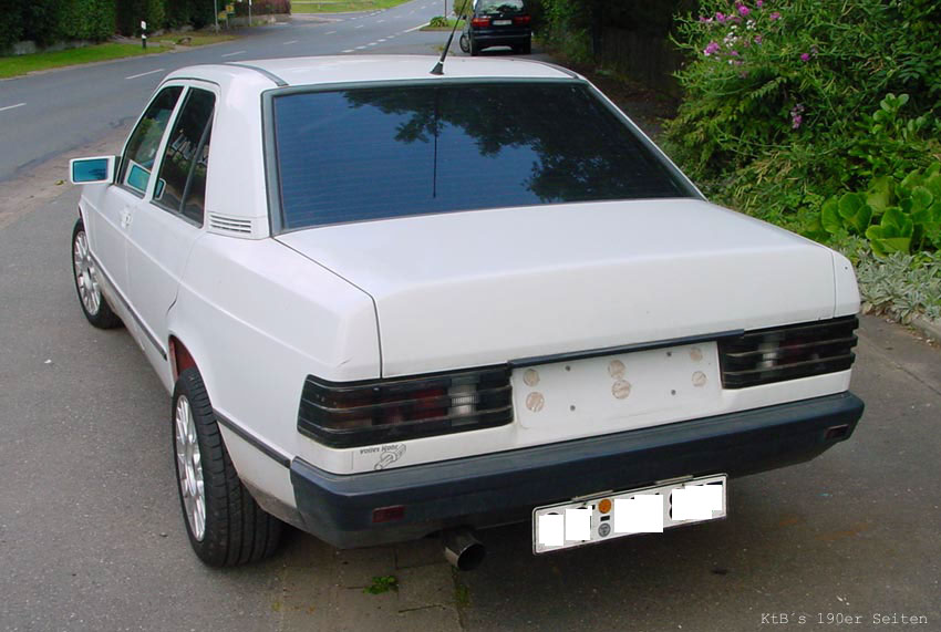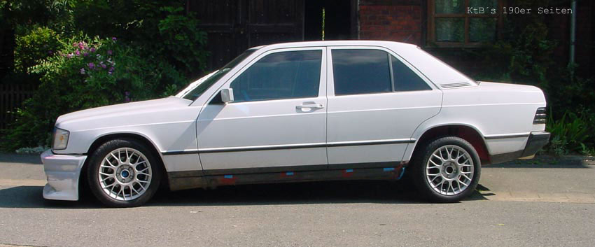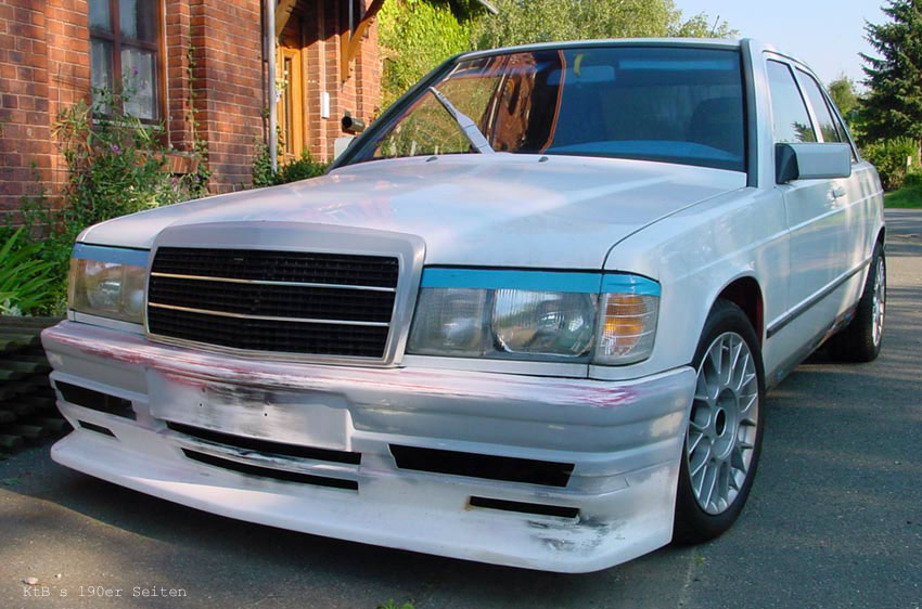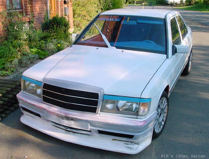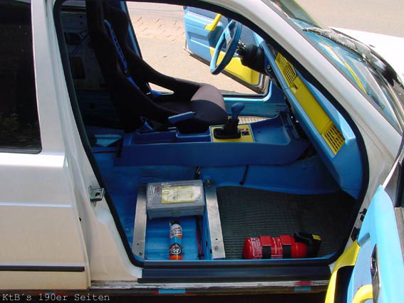 Christians 190E (aufgrund von Schwierigkeiten hier nur die vorab Bilder, es wird noch weiter umgebaut und lackiert) Felgen/ Reifen :15" BBS DTM Typ 207 mit Dunlop SP2000 ,195 / 50 Karosserie : Zastrow GFK Frontspoiler, Zender Seitenschweller, Grill ohne mittlere Strebe , hintere Türen ohne Griffe, 16V Antenne, , original Antennenloch verschweißt, Heckklappe clean (ohne 190E Schriftzug, Mercedesstern und Schloss), schwarze Heckleuchten, Kofferraumboden & Reserveradmulde entfernt und durch 3mm Aluplatte ersetzt, Innenraum : Armaturenbrett und vordere Türverkleidungen in hellblau / gelb, 32er Momo in hellblau, Folia - Tec Short Shift Schaltknauf (speziell durch Aluhülse angepasst) und Racing Pedalauflagen blau, , Sparco Vollschalensitze auf Eigenbau Alu-Konsolen (so tief wie es geht) mit Schrot ASM Gurten ,hinterer Wagenteil komplett leer", keine Schalldämmung, keine Lüftung, Gerade in Arbeit: Evo 1 Kotflügelverbreiterungen hinten, Evo 3 Heckschürze |