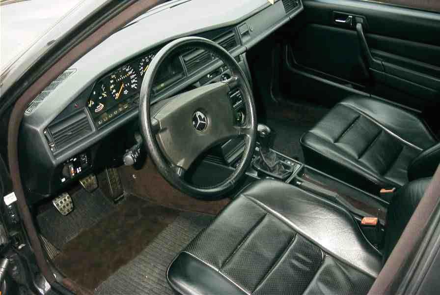 techn. Daten (Halterangaben): 190E 2,3-16V, Bj Ende 87 G-Kat, 125 kW, Baujahr der Halters: 5.12.79 Ausstattung: Leder, 4 Kopfstützen, el. Fensterheber vorne, el. Schiebedach, Sitzheizung Modifikationen: rote Rückleuchten, weiße Blinker, H&R Federn, 7x15 Zoll Felgen mit 205/55/15, modifizierter Grill, SLK Pedale, Alarmanlage, Maganatendstufe mit 30er Bassrolle, MB-Quart Lautsprecher hinten, Focal Lautsprecher vorne |