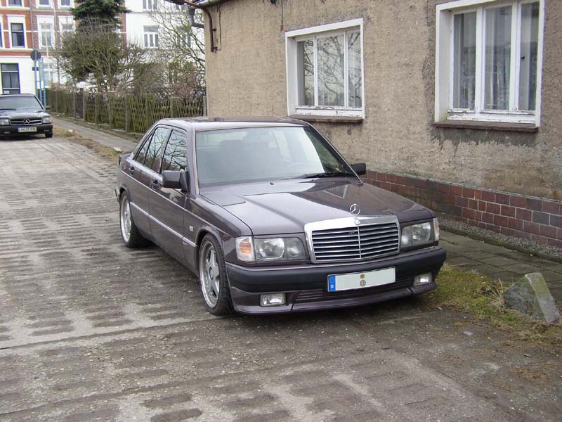 190E 2.3 Sportline, Bj.1992, Farbe Bornitt, Extras: Avantgarde Grill, OZ Futura 7,5 x 17 mit 215/40 vorne und 245/35 hinten, Sportlenkrad, weiße Blinker, schwarze Rückleuchten, Scheinwerferleisten, 40 mm Tieferlegung, AMG Frontschürze, Rieger Heckscheibenblende |