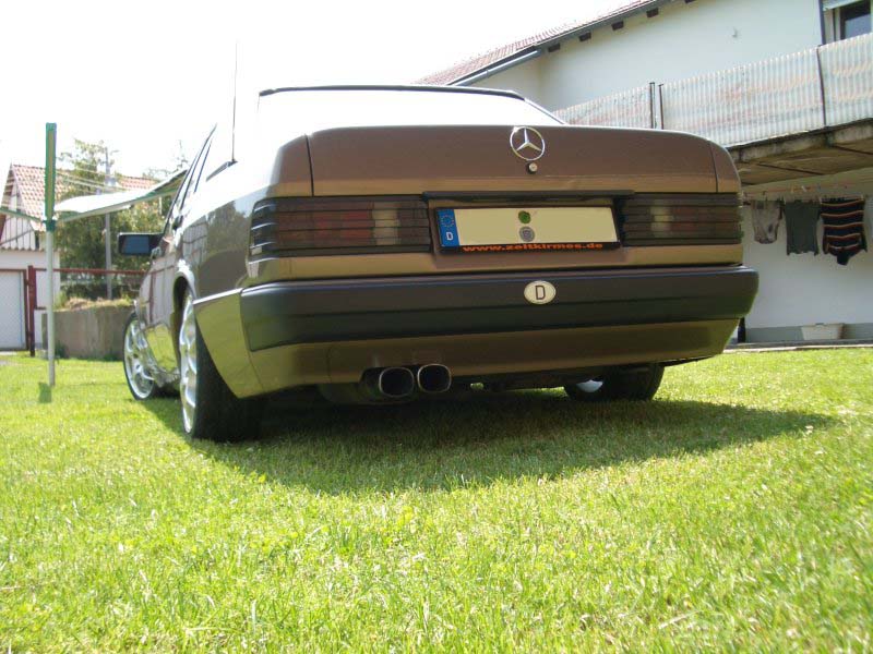 techn. Daten (Halterangaben): 2,0 Liter, 118 PS, 172000 km, 4-Gang Exterieur: - Avantgarde-Grill - weiße Blinker vorne mit Standlicht - schwarze Rückleuchten - Remus Doppelrohr-Auspuff - Alufelgen TSW VX1 7,5x16 - Reifen 205/45 R16 - Sportfahrwerk von HundR Interieur: - hintere Scheibe leicht getönt, ehemals auch die vorderen Scheiben - Schroth-Gurte Fahrer und Beifahrer - 32er Sportlenkrad von D&W - beleuchteter Schaltknauf (blaue LED`s) - zuschaltbarer beleuchteter Fußraum (blaue Neonröhre) - elektrisches Schiebedach - Kenwood KDC-7080R CD-Radio - Endstufe von DundW