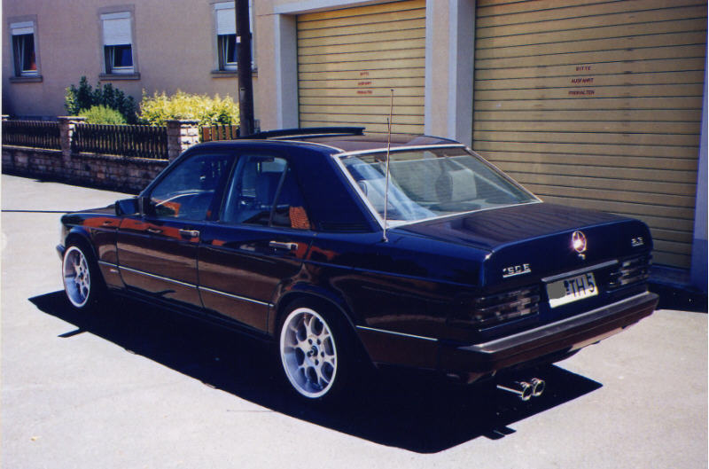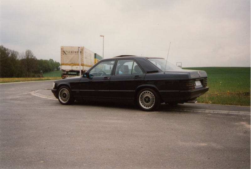 techn. Daten (Halterangaben) 190E 2.3 für nen 88er steht er noch top da. Die Austattung enthält u.a. E-Fenster,elek. Schiebe-Hebedach,elek.u beheizbare Außenspiegel u. Waschdüsen,Automaticgetriebe, ZV-mit Funk u.Alarm,Mittelarmlehne vorne,Servo,ABS,Nebelleuchten blau,US-Seitenbeleuchtung vorne u. hinten, Sowie 40mm Brabusfedern mit 1er Gummis,K+N Luftfilter nen Supersprint Sportauspuff. Nicht zu vergessen die vercromten Zierleisten runherum sowie meine Borbet BS-Felgen der größe 9mal16 Zoll un 215/40er Bereifung.