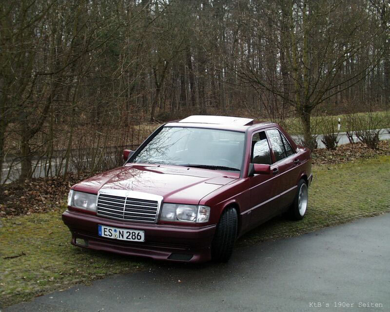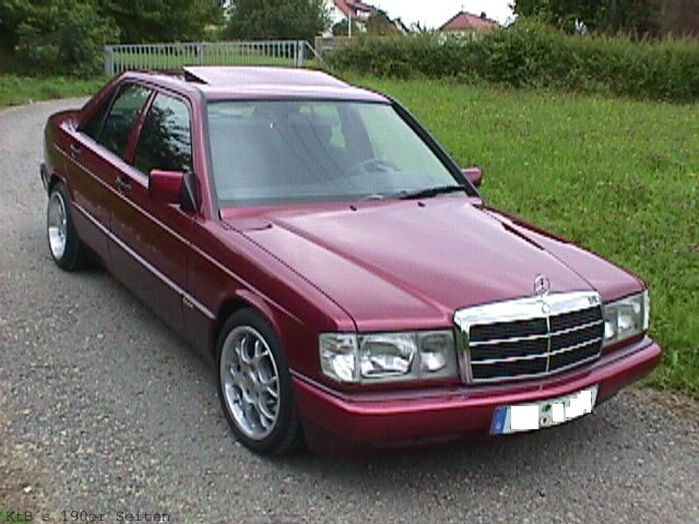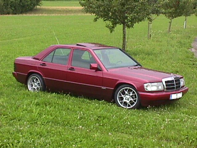 MB 190E Sportline, 109PS, FK Fahrwerk, Borbet BS 7,5+9*16 mit 215/40/16 Serienausstattung: el. Fensterheber, ESHD, Color, Sportlineausstattung Tuning: Sportlenkrad Raid, Carbon Design, Funkfernbedienung, Sportauspuff, weisse Blinker, Advantgarde Grill, Frontspoiler, lackierte Stossstangen, Aluschaltknauf, Fahrwerk und Felgen.