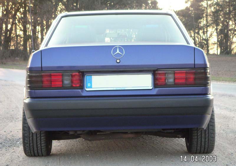Nachgerüstet: AMG Felgen 7,5 x 16 mit 225/45 ZR 16 Spurverbreiterung HA 30mm rot-scharze Rückleuchten weiße Blinker |