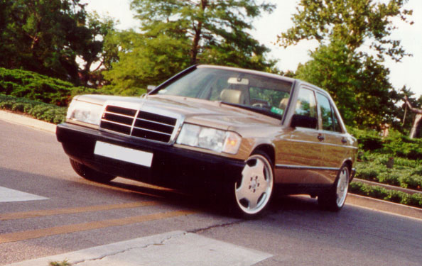 Scott´s 190er (Aus den USA) techn. Daten (Halterangaben): 1986 190E 2.3 mit 5gang schaltung 17x7.5 ET35 AMG style Felgen mit 215/40/17 Sumitomo HTR-Z II's hinten und 205/40/17 Dunlop SP Sport W10's vorne. H&R Tieferlegungsfedern mit Bilstein Sportdämpfern. Kenwood CD player und Infinity Boxen (Which Ansa sport Scahldämfer Bosch European headlights (Is ja ein US Auto) |