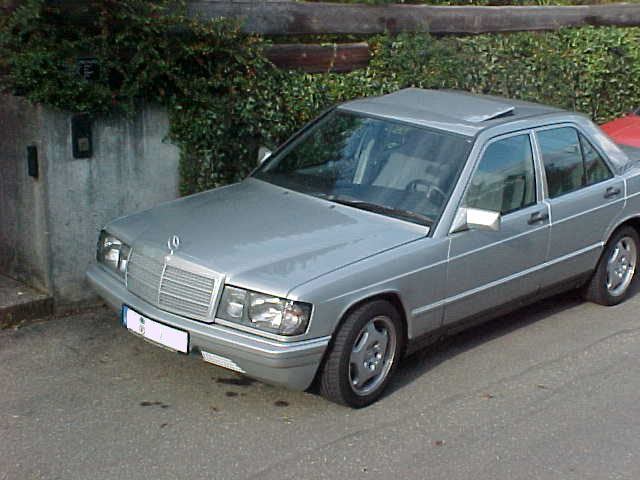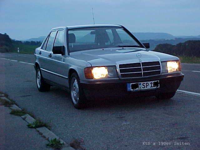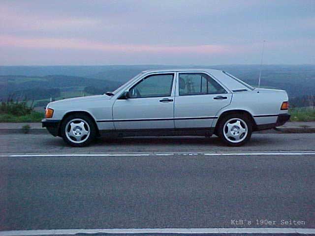 Baujahr1987, Km82000 Motor190 E 2,0, Kw87 Bereifung :205/50/15 auf Avantgarde Felgen Tieferlegung :40mm 4-Gang Automatik Getriebe Höchstgeschw. :im Brief 185 läuft aber 210Km/H gut eingefahren Verbrauch zwischen 8,5 und 10 l je nach fahrweise hat ASD gut bei rasanter fahrweise in Kurven sonst alles orginal im weitesten Sinne außer Radio |