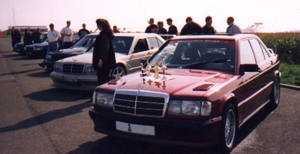 190er Fantreffen in Oschersleben Samstag den 29.09.2001 fand zum Saisonabschluß ein 190er Treffen mit ca. 21 Fahrzeugen statt, anschließend besuchten wir eine Rennveranstaltung, bei der unter anderem auch ein original DTM EVO II teilnahm. Später fand wiedereinmal die Wahl zum schönsten Auto statt, bei dem es wieder Pokale zu ergattern gab. Und abends saßen wir dann noch gemütlich beisamen, aßen Pizza und tauschten Erfahrungen aus. | ||||||||||||||||||||||||||||||||||||||||||||||||||||||||||||||||||||