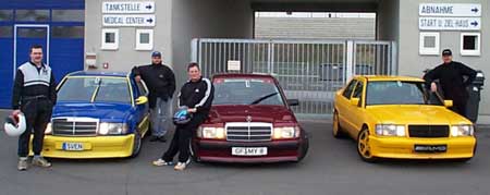 Die Rennwagen mit Fahrern